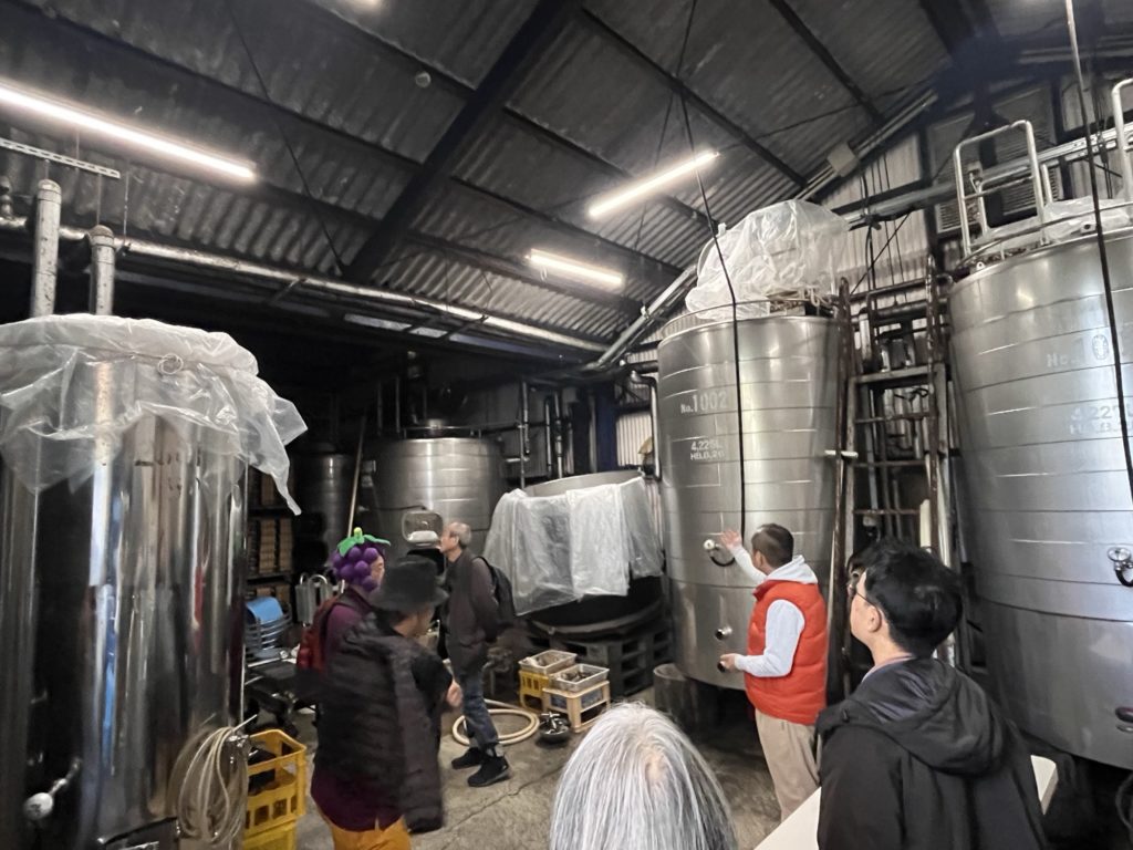 ワイナリーでは、ここ巨峰ワインの歴史や日本最古の巨峰のワインを見せてもらった。